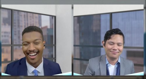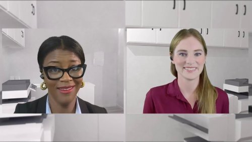 Director Heather Arnson’s realization is characterized by visual élan. The presentation opens with lovely establishing images of the building’s exterior and overhead views of the empty workspace, then switches to the Zoom format of small square blocks. The backgrounds of the actors are realistic and artfully blend to simulate the semblance of them being together even in a scene taking place at a copier. Ms. Arnson’s crisp video staging adds as much momentum to the material as possible.