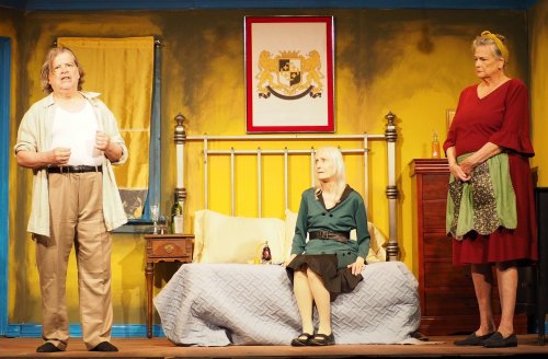 Mark Solari, Marilyn Duryea and Sheila Dehner in Tennessee Williams’ “The Lady of Larkspur Lotion,” part of “Five by Tenn” at the Bernie Wohl Center (Photo credit: Bob Johnson)
