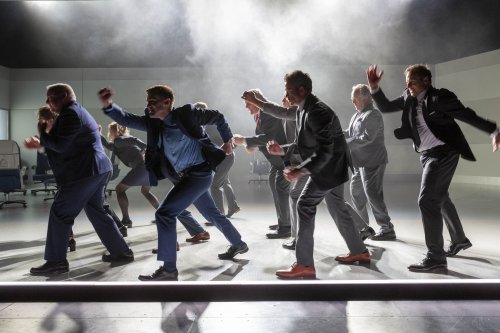 It is difficult to know how to classify The Shed’s production of Claudia Rankine’s “Help,” inspired by her controversial New York Times article, “Brief Conversations with White Men,” which appeared on July 17, 2019, or its online version, “I Wanted to Know What White Men Thought About Their Privilege. So I Asked.” Is it a docudrama, an illustrated lecture, a polemic? In any case, Taibi Magar’s imaginative and innovative production helps make this riveting theater, though probably a bit too long as it is only about the one thing, thoughts on white male privilege. The 12-actor ensemble includes 9 white men, two white women and one Black actress, among them recognizable featured players April Matthis (Toni Stone, Fairview), Nick Wyman (Network, My Fair Lady), John Selya (Movin’ On, Come Fly Away), Tina Benko (Ivo van Hove’s The Crucible; The Roundabout Theatre Company’s The Rose Tattoo) and Charlotte Bydwell (“Lucy Michael” in Richard Nelson’s Michael plays).