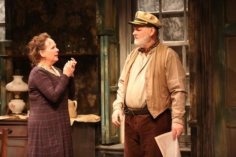Maryann Plunkett as Juno and Ciarán O’Reilly as the Captain in a scene from Sean O’Casey’s “Juno and the Paycock” at the Irish Repertory Theatre (Photo credit: Carol Rosegg)