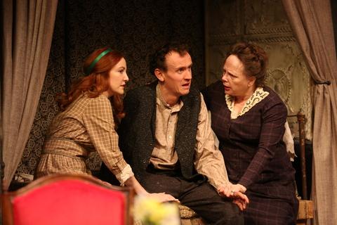 Sarah Street as Mary, Ed Malone as Johnny, and Maryann Plunkett as Juno in a scene from Sean O’Casey’s “Juno and the Paycock” at the Irish Repertory Theatre (Photo credit: Carol Rosegg)