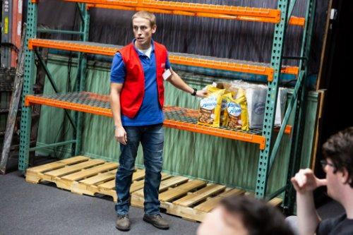 However, like Alice in Lewiston, the main character is not Jake, but Chris (Edmund Donovan), the twentyish overnight stocker assigned to train him. Chris has fled the home of his recovering drug addict mother Tisha (Heidi Armbruster), and has had a difficult time making ends meet, particularly paying for the local college that he has graduated from. He wants to be a writer of fiction but so far has not been published. He is also a closeted gay man in a community where such behavior is frowned upon, unlike the experience of the out Jake whose Connecticut parents have been comfortable with his declaration when he was 15 years old. Periodically, Trisha shows up before or after his work, trying to reestablish contact with Chris but he is reluctant to become involved in her games.