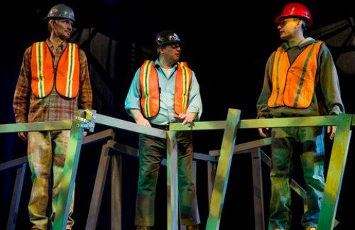 Denny Desmarais, Mike Pirozzi and Greg Seage in a scene from Dawn Jamieson’s “Mangled Beams” (Photo credit: Isaiah Tanenbaum)