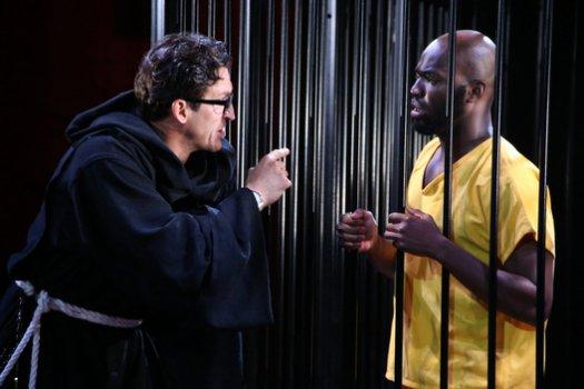 Jonathan Cake and Leland Fowler in a scene from “Measure for Measure” (Photo credit: Gerry Goodstein)