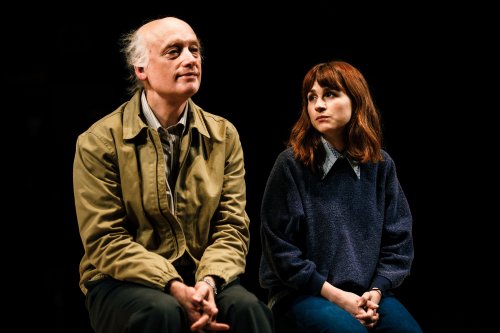 Frank Wood and Aya Cash in a scene from Emily Feldman’s “The Best We Could” at Manhattan Theatre Club’s New York City Center Stage I (Photo credit: Marc J. Franklin)