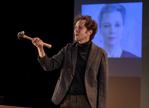 Besides the authoritarian images of the parents, George Gavin’s accomplished video design also includes clips of programs seen on a television.