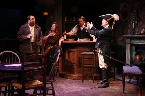 The title of the play refers to the flag of the Irish Citizen Army (ICA), a socialist paramilitary group that O’Casey left a couple of years before the Easter Rising. O’Casey’s ambivalence toward his former ideological brethren reveals itself most strongly in the antagonistic relationship between Peter Flynn (Robert Langdon Lloyd), an aging, ardent, and foolish nationalist who looks like he’s ready to do battle in The Pirates of Penzance, and Covey (James Russell), a callow socialist whose ideas might carry more weight if he didn’t always frame them as put-downs. Caught in the middle is Fluther Good (Michael Mellamphy), a decent bloke as amiable as his name who is apparently willing to wind up wherever fate takes him.
