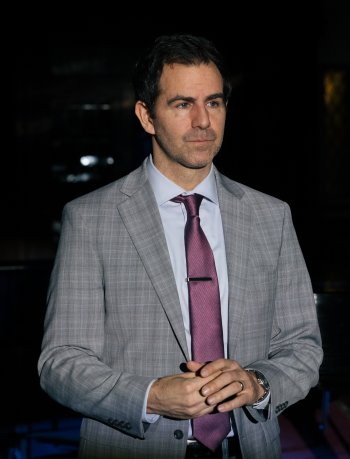 Christopher J. Domig as Mitch in a scene from the Sea Dog Theater production of “Tuesdays with Morrie” at St. George’s Episcopal Church (Photo credit: Jeremy Varner)