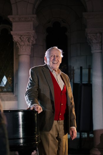 Len Cariou as Morrie Schwartz in a scene from the Sea Dog Theater production of “Tuesdays with Morrie” at St. George’s Episcopal Church (Photo credit: Jeremy Varner)