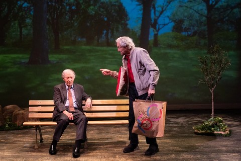 Bernie Kopell and Hal Linden in Ed Weinberger’s “Two Jews, Talking” at Theatre at St. Clement’s (Photo credit: Russ Rowland)