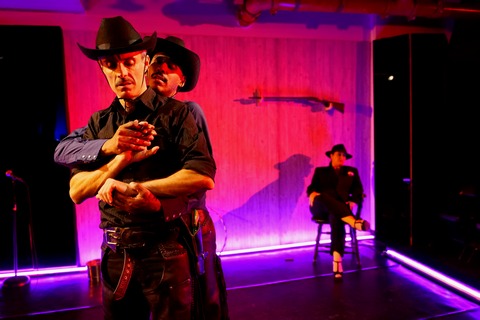 Following a comically exaggerated shootout, the two men make out. A cowgirl and a Mexican woman get together. At one point performers blindfold audience members for a brief bit. There’s a hula-hoop dance number. Monologues detailing homophobia, racism and gay bashing are enacted. It’s all cryptic, edgy and well-executed entertainment for devotees of non-traditional theater.