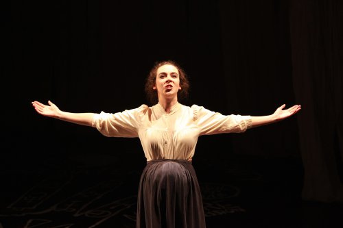 Jane Bradley as Mary Shelley in a scene from “Phantasmagoria; or, Let Us Seek Death!” (Photo credit: Theo Cote)
