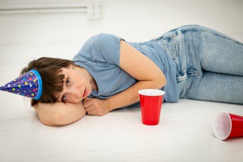 Crossman, giddy and quite drunk, is attracted to Eli whom she had met. Empowered by his invitation to his New Year Eve party, she imagines a budding relationship. She wears a glittery short dress—costumes by Brynne Oster-Bainnson—that she hopes will attract Eli’s attention amongst all the party guests. It does.
