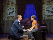 The musical has inspired many to learn how to sing. The magic comes from Bob Crowley's breathtaking sets and costumes aided by David Benken's technical direction: Mary Poppins flies in and out on her umbrella, people pop out of chimneys, toys become human, birds fly around the theater, and statues break their poses and move. The opening scrim is a blue pen and ink illustration which suggests the world of the P.L. Travers' stories on the printed page. The Banks' house at 17 Cherry Tree Lane, London, is a giant Victorian doll house come to life. Crowley uses brilliant colors in both his costumes and the fantasy sequences to replace the animation that made the Walt Disney film so attractive. [more]
