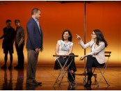 This musical follows the hopes, dreams and disappointments of six children (played by adults) competing in their county spelling bee, with the winner going to the Nationals. Also, competing in the contest are four pre-selected audience members. This type of gimmick usually comes off as forced, but with the help of the cast and the accommodating script, this venture into audience participation is one of the true charms of the show. [more]