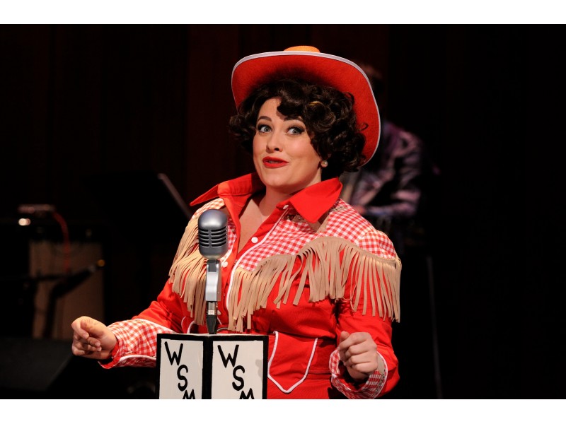 Oh, I enjoyed the show, to a degree. I liked hearing, once again, some of the great songs that Cline loved to sing, including “Walkin’ After Midnight,” “I Fall to Pieces,” “Honky Tonk Angels,” “Anytime,” “Lovesick Blues,” and “Crazy.” I always loved Patsy Cline, and I was glad to hear these terrific numbers once again. McCracken’s voice is, happily, reminiscent of Cline’s in timbre. Ted Swindley, who wrote this pleasant-but far-from-compelling show, gives us an appealing character sketch of a very down-to-earth star. And Susan Fletcher does an outstanding job, playing a fan who befriends Cline. (She is actually the stronger actor of the two actors, although she has the smaller role.)