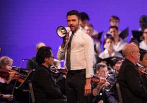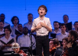 The oratorio’s third major singer, Scarlett Strallen—who has numerous Broadway, London, and concert credits to her namehandled with ease the challenging soprano vocal lines she had to execute. I greatly appreciate her vocal skills. And Lippa has written great material for her. Ideally, though, the role calls for a warmer natural sound than Strallen’s got, to convey more compassion. Artists who’ve played this role in past productions include Laura Benanti and Kristin Chenoweth.   (Barbara Cook, in her prime, would have been absolutely ideal.)