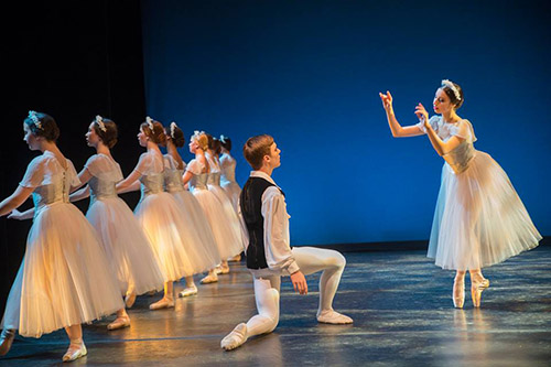 In the first act (“Les Sylphides,” from 1909, with choreography by Michel Fokine, music by Chapin, and staging by Denise Warner Limoli), Moore and Jimenez, and Riley McGregor and Cassandra Punzo, all contributed deftly as soloists. But in “Les Sylphides,” it was often the whole ensemble, rather than an individual, that commanded notice; the “star,” if you will, was the entire Cops de Ballet. This is a challenging older piece, and members of the ensemble grouped and regrouped into striking visual images, their body language and solemn expressions transporting us, in this “romantic reverie,” to an earlier time and place.