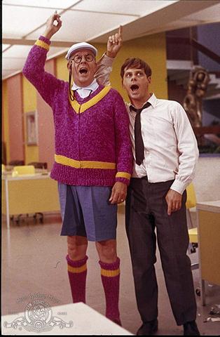 Rudy Vallee and Robert Morse in a scene from the film version of “How to Succeed in Business Without Really Trying (Courtesy of Metro-Goldwyn-Mayer)