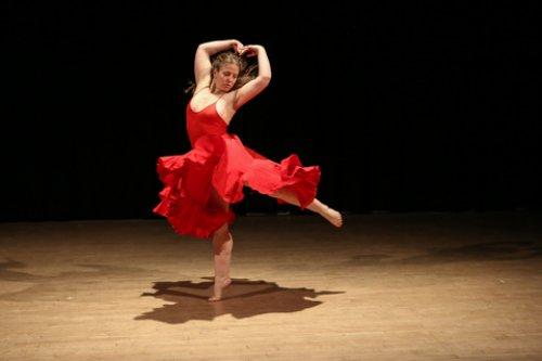 Hendrickson, dressed in flowing red topped by a folksy vest designed by Waring also danced Passloff’s three-part “He Dreams of Small Battles” to Bela Bartok’s “Romanian Folk Dances” played by Schultz. The first two sections had hints of ethnic dance steps, but the third, called “Heaven,” had Hendrickson, now stripped down to a white dress in a more ruminative mood.