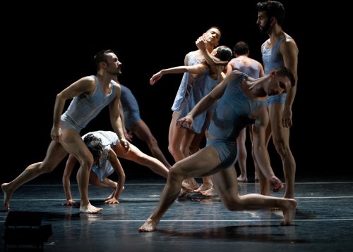 The last work, “El Beso,” brought some lightness to the program. Choreographed by Gustavo Ramírez Sansano to bright Zarzuela music and wittily dressed in angularly cut dark costumes by Angel Sanchez, the dancers used flirting and kissing motifs to explore the title which, of course, means “kiss.” All variations on romantic liaisons were shown, with kisses used as emotional weapons, little seductive tricks and just plain sensuality. The large cast dashed about spiritedly forming fast-moving pods of dancers relating to each other. A man is surrounded by three women. Two men hold hands and embrace. Kisses travel down a line. “El Beso” was a beautifully performed delight.