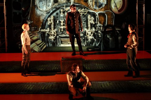 Suzy Jane Hunt, Marcel Jeannin (seated), Richard Clarkin and Rick Miller in a scene from “Twenty Thousand Leagues under the Sea” (Photo credit: Itai Erdal)