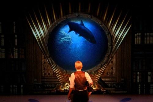 [avatar user=”Victor Gluck” size=”96″ align=”left” ] Victor Gluck, Editor-in-Chief[/avatar]For those of us who grew up on the science fiction stories of Jules Verne, it is great fun to see Twenty Thousand Leagues under the Sea on stage. This may well be the first major Verne story to be dramatized in New York since the Orson Welles/Cole Porter musical of Around the World in 80 Days in 1946. The Canadian Kidoons/WYRD Production now having its U.S. premiere at the New Victory Theater intended “for everyone ages 8 +” is fine for adults as well as children. While the story is both watered down and leisurely told, this is a visually stunning adventure story and will hold the attention of the younger members of the audience.