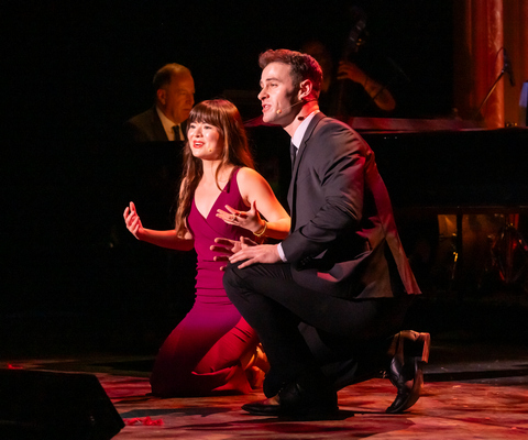 Anna Zavelson and Sam Gravitte in a scene from Lyrics & Lyricists: “Wonder of Wonders: Celebrating Sheldon Harnick” at the 92nd Street Y, June 1-3, 2024 (Photo credit: Richard Termine)