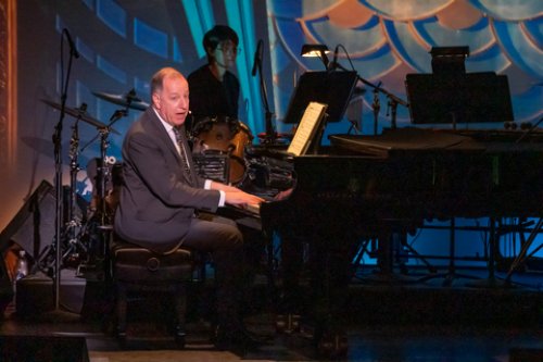 Maestro Ted Sperling, artistic director and host, at the piano with Janna Graham on percussion in a scene from Lyrics & Lyricists: “Wonder of Wonders: Celebrating Sheldon Harnick” at the 92nd Street Y, June 1-3, 2024 (Photo credit: Richard Termine)
