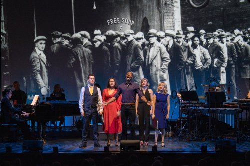 Nick Spangler, Mikaela Bennett, Clifton Duncan, Megan Sikora and Laura Darrell as they appeared at 92Y’s Lyrics & Lyricists Series: “E.Y. ‘Yip’ Harburg: Follow the Fellow Who Follows a Dream” (Photo credit: Richard Termine)