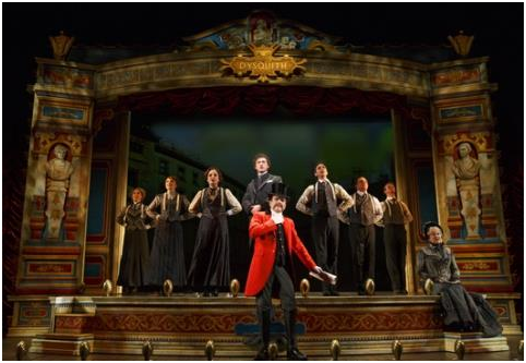 Alexander Dodge’s Edwardian sets which appear inside a reproduction of Pollock’s Toy Theater are always delightful. Linda Cho has created an enchanting collection of costumes from those for all of Mays’ transformations into the D’Ysquiths to the women’s lovely and seductive gowns. The amusing projection design is the work of Aaron Rhyne. Jonathan Tunick’s melodic orchestrations are always faithful to its Edwardian period and its music hall roots. Credit director Tresnjak, artistic director of Hartford Stage, now making his Broadway debut, with keeping this confection airborne throughout the evening, including when stretching credulity to the limit.