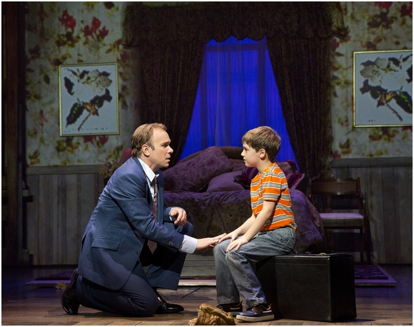 Edward Bloom, against all odds, but no more incredible than the rest of his adventures, gets the girl, the knockout beauty, singing lulu, acting dream Kate Baldwin, who plays Sandra Bloom, his ever-loving wife and mother to that wistfully skeptic little Will (marvelous Zachary Unger) who grows up to be wistfully hardnosed favorite and only son, Will, blooming star Bobby Steggert.