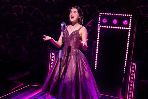 Gracie Lawrence as Connie Francis in the new musical “Just in Time” at the Circle in the Square (Photo credit: Matthew Murphy and Evan Zimmerman)