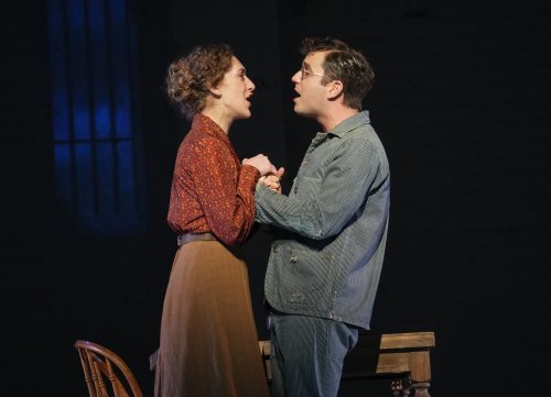 Erin Rose Doyle as Mary Phagan and Jake Pederson as newsboy Frankie Epps in a scene from the revival of “Parade” at the Bernard B. Jacobs Theatre (Photo credit: Joan Marcus)