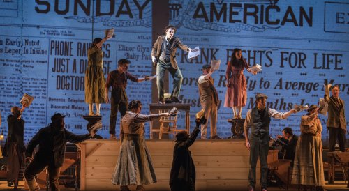 That detachment is further reinforced by both Uhry and Brown’s broad treatment of Leo Frank’s persecutors, particularly the anti-Semitic newspaper publisher Tom Watson (Manoel Felciano) who sprayed his venomous rhetoric even more wildly after the Georgia governor John Slaton (Sean Allan Krill) commuted Leo Frank’s death sentence to life in prison, a compassionate decision hate ultimately wouldn’t allow. What neither Uhry nor Brown touch upon is the rising backlash that chipped away at the values of the New South and helped transform Watson, once a pro-Black suffrage, anti-lynching advocate, into a white supremacist. If Parade wants to enlighten audiences about current demagogic perils, as implied by the musical’s closing caption/warning, “It is still ongoing,” then Uhry and Brown missed a chance to take a hard look at the destructive nature of political opportunism.