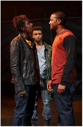 Saul Williams, Dyllon Burnside and Joshua Boone in a scene from Holler If Ya Hear Me (Photo credit: Joan Marcus)