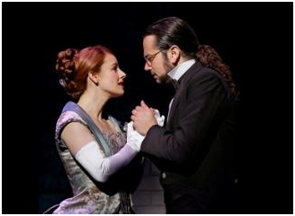 On the plus side, Ost’s costumes are picturesque for the 19th century setting, and the lighting by Jeff Croiter has a film noir, horror film look. Generally, the show looks like a touring show, which in fact it is.