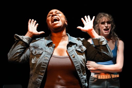The show really kicks into high gear in the second act, when it becomes more of a satire. The narrative focus shifts to an unnamed writer trying to sell the musical from the first act to producers, all of whom want her to make it more “marketable.” Maximizing marketability, much to The Writer’s chagrin, means removing the original work’s emotional depth and interesting themes and replacing them with Black stereotypes and by-the-numbers gospel songs calculated to soothe white audiences. Even the name is changed from “Chasing Grace” to “Rehab! The Musical.” Chantelle Guido (Brecht in Exile) is quite funny as theater producer Magical Why-Tee, delivering all her lines (and wearing a kente cloth) with a wonderfully shameless abandon. Thompson is firing on all cylinders as the show-within-a-show’s new lead actress and co-writer (she’s not given a name, and is credited simply as “The Black, Tony-Award Winning Writer/Director of Stage and Screen), playing her as an over-the-top embodiment of selling out with such charisma that everything on stage seems to bend towards her.