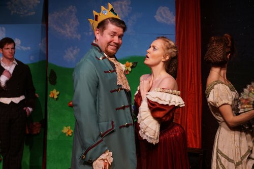 Papas’ direction is energetic but lacking in style. His dance routines are minimal and quite conventional. While the songs are well sung in music director James Stenborg’s vocal arrangements, none of them make much impression as none of them forward the plot. In the dual role of Louis Blore and King Louis XV, Peyton Crim is hearty but off-hand. Jennifer Evans exhibits much vivacity as singer-dancer May Daly, and later Madame Du Barry, but like all the other characters in the plot her role is merely one-dimensional with a great many zingers to hurl.