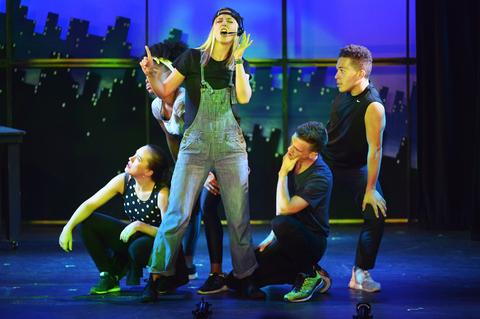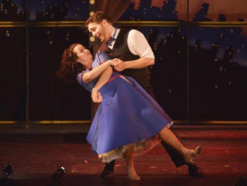 Jenna Haimes also deserves a lot of credit for choreographing so much dancing on the tiny raised stage at the Players Theatre, even if many of the moves invoke both the Radio City’s Rockettes and A Chorus Line.