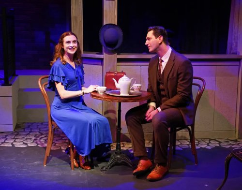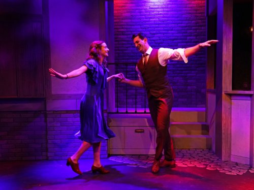 Jessica Parks’ unit set which suggests a cobblestoned old town street is very workable for all of the scenes from the insert for Chava’s shop to the café and dance hall, and Chava’s bedroom, and her prop designs cleverly flesh out the scenes. The minimal costumes by Patricia Doherty (Chava in blue; Charlie in brown) adequately suggest the 1930s. Nick Simone’s sound design brings in the world outside of the shop. The lighting by Jill Nagle appropriately telegraphs the time of day for each scene. Aaron Benham as music director does a yeoman job playing the entire score solo though his keyboard often sounds tinny and doesn’t do the melodic score justice.