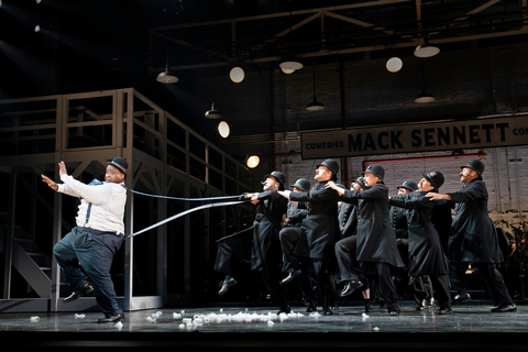 Major Attaway as Fatty Arbuckle and cast in a scene from the New York City Encores!’ revival of Jerry Herman’s “Mack & Mabel” (Photo credit: Joan Marcus)