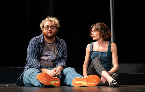 Marek Zurowski and Josey Miller in a scene from David Rackoff’s new musical “Nothing Like Broadway!” at the Marjorie S. Deane Little Theatre (Photo credit: Arden Dickson)
