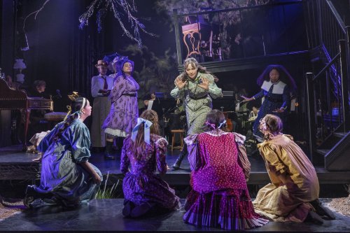 While not as forlorn as one would expect the waif Sara to be, Sarah Walsh does convey her feeling of not belonging. Carly Gendell is fine as the whiney Edith, the slowest student in her class. As the two teachers, Marina Pires’ Mademoiselle is both compassionate and ironic taking Sara’s side and seeing through Mrs. Appleyard, while Kaye Tuckerman’s Miss McCraw is stand-offish and mysterious. Reese Sebastian Diaz is charming as Michael, the visiting young English lord, though he has less to do than in the book or the film version, while Bradley Lewis as the tracker Albert, who is actually indigenous is given little time to make that clear.