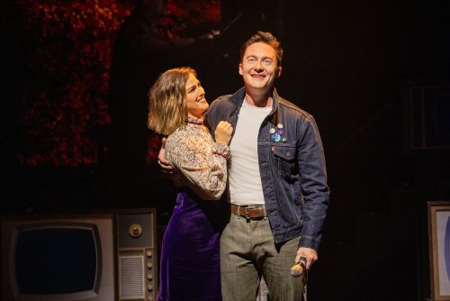Cassadee Pope and Drew Becker in a scene from “Rolling Thunder: A Rock Journey” at New World Stages (Photo credit: Evan Zimmerman for MurphyMade)