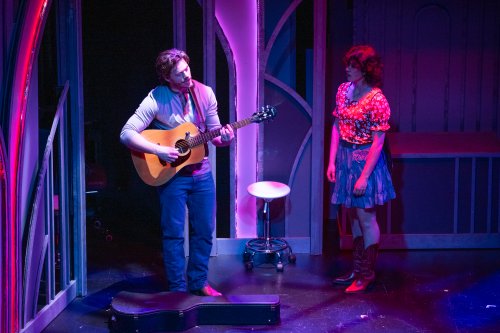 Jack Rasmussen and Brogan Nelson in a scene from the new musical “The Paparazzi” at AMT Theater (Photo credit: Jillian Nelson)