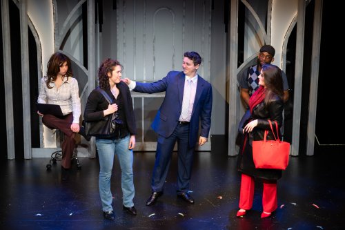 Sydney Kamel, Brogan Nelson, Jake Evans, William Warren Carver and Julia Meadows in a scene from the new musical “The Paparazzi” at AMT Theater (Photo credit: Jillian Nelson)