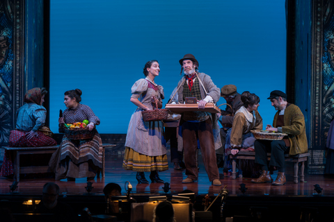 The evil characters: Basye, Mirele’s step-mother (Rachel Botchan, boo-ably awful); Basye’s uncle, Elyokem (Jonathan Brody, effective as an elegant devil); and the Sorceress, herself, Bobo Yakhne (gleefully and campily portrayed by the charismatic Mikhl Yashinsky).