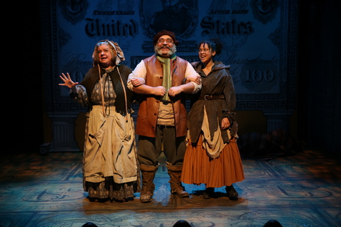 It’s a reality that makes for some great not-so-far-fetched villainy, with Moore taking satiric joy in tunefully presenting Boucicault’s three baddies: Bloodgood; his spoiled, status-obsessed daughter Alida (the hilarious Amanda Jane Cooper); and Badger, an inept, would-be blackmailer whose inconsistent morality fluctuates with the demands of the plot. The show’s best songs belong to them, particularly Cooper’s solo “Oh How I Love Being Rich,” which she performs with a superlative haughtiness that might have even turned J.D. Rockefeller into a union man. The pompous effect is aided immeasurably by one of the several ostentatious ball gowns costume designer Linda Fisher provides for Cooper.