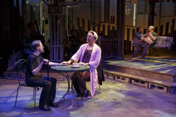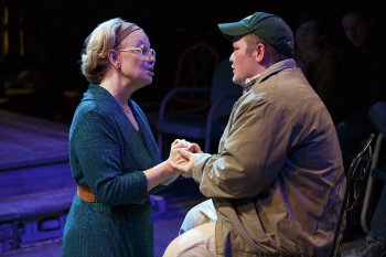 Jeffrey Kuhn as Jackson and Annette O’Toole as Robert in a scene from “Southern Comfort” (Photo credit: Carol Rosegg)